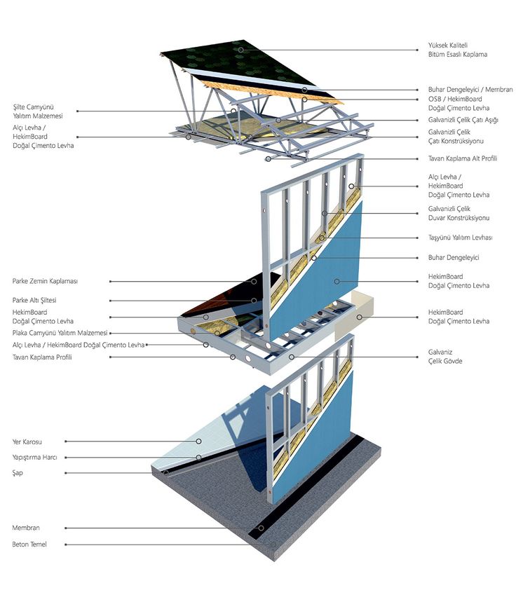 Hızlı kurulum ve maliyet avantajı sunan, ince çelik profillerle yapılan dayanıklı yapılardır.